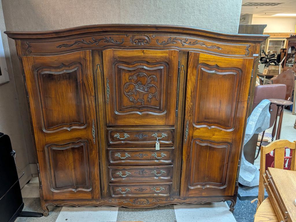 Lot 426: Provincial Style Large Wardrobe With 3 Doors And 4 Drawers.