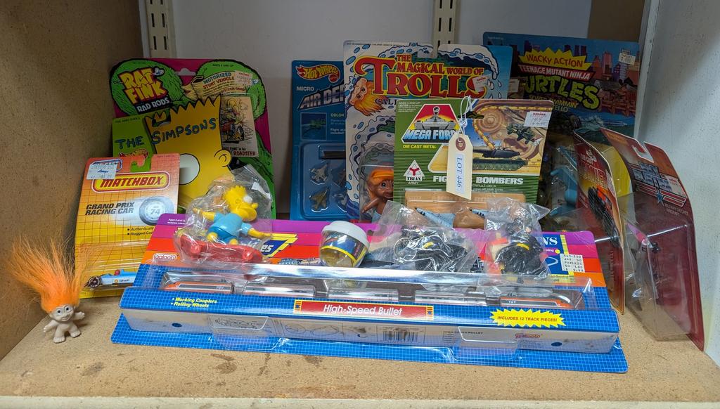 Lot 446: Shelf Of Dolls Incl. The Simpsons.