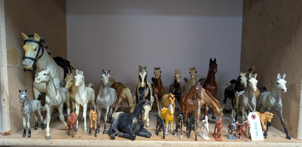 Lot 448: Shelf Of Toy Horse Figurines.