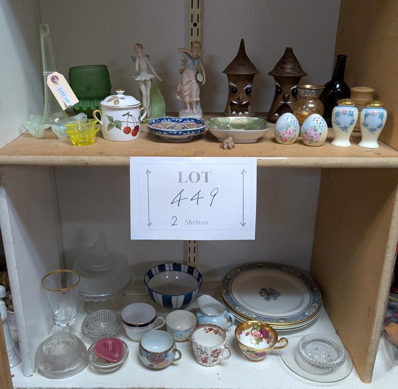 Lot 449: (2) Shelves Of Knick Knacks Incl. Figurines, Salt & Pepper Shakers.