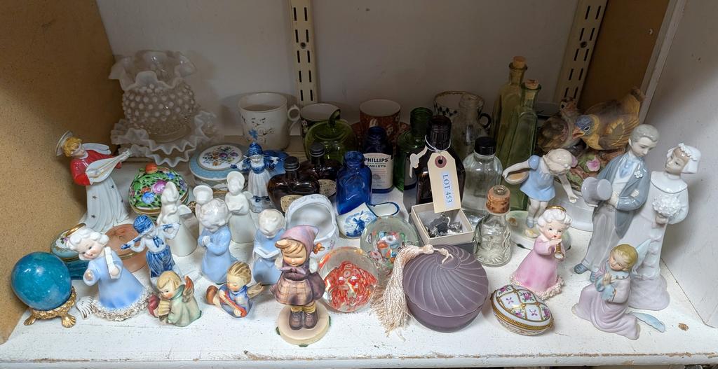 Lot 453: Shelf Of Knick Knacks Incl. Lladro & Other Figures, Bottles.