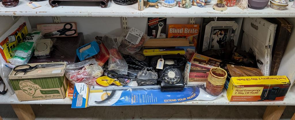Lot 457: Large Shelf Of Household Items Incl. Rotary Telephone.