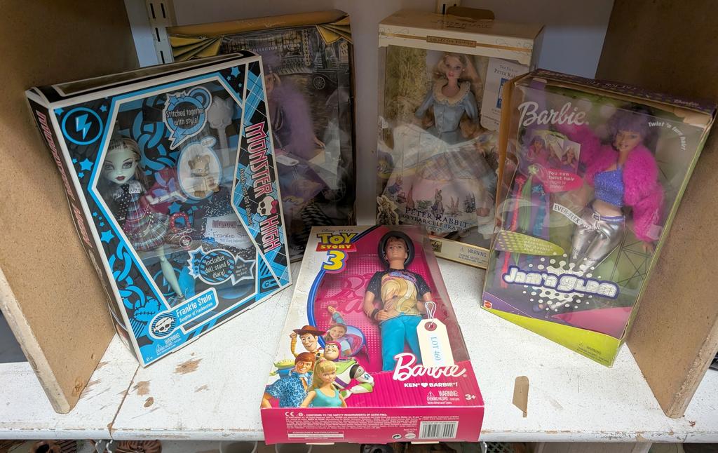 Lot 460: (5) Dolls In Boxes Incl. Peter Rabbit Barbie.