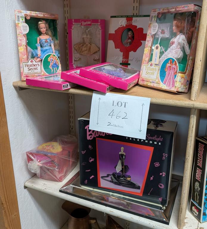 Lot 462: (2) Shelves Of Barbies Incl. Solo In The Spotlight, Telephone.