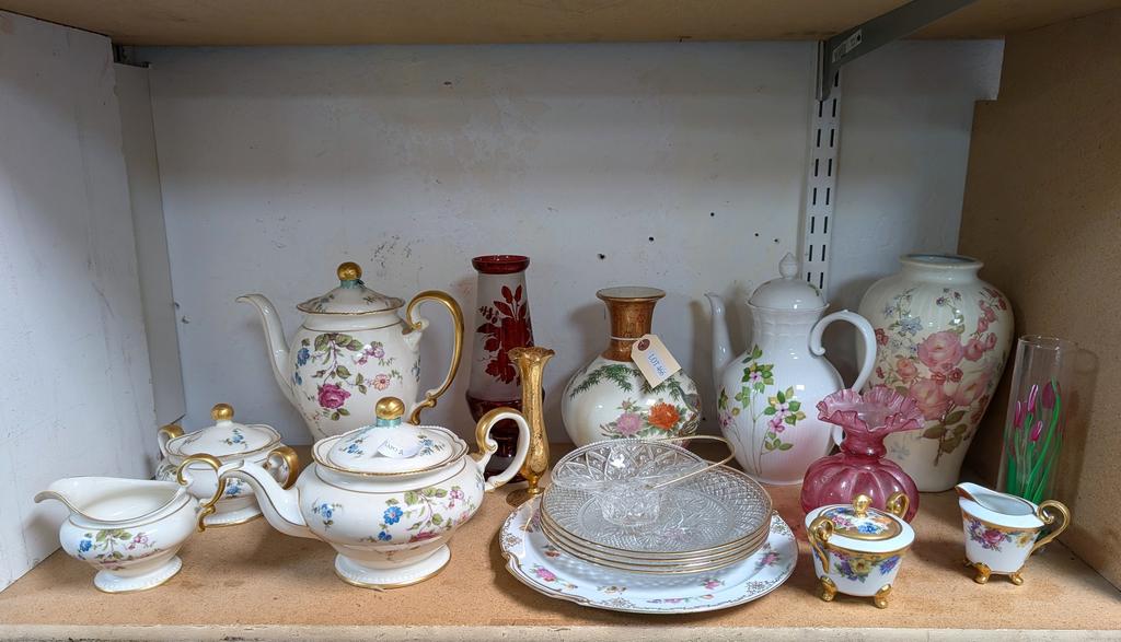 Lot 466: Shelf Of Porcelain And Glass Items Incl. Tea Set.