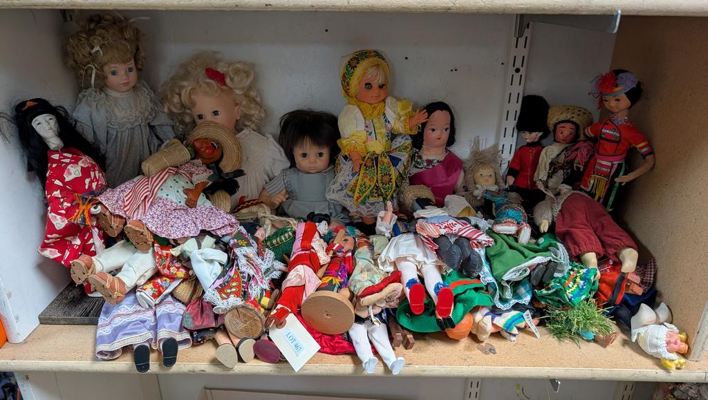 Lot 480: Shelf Of Dolls.