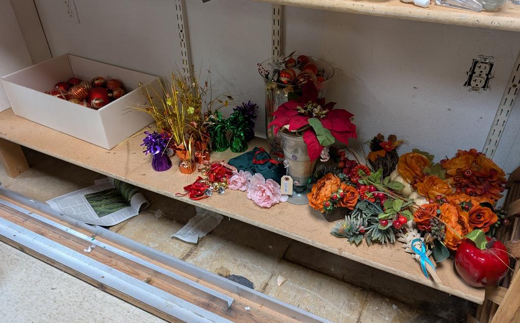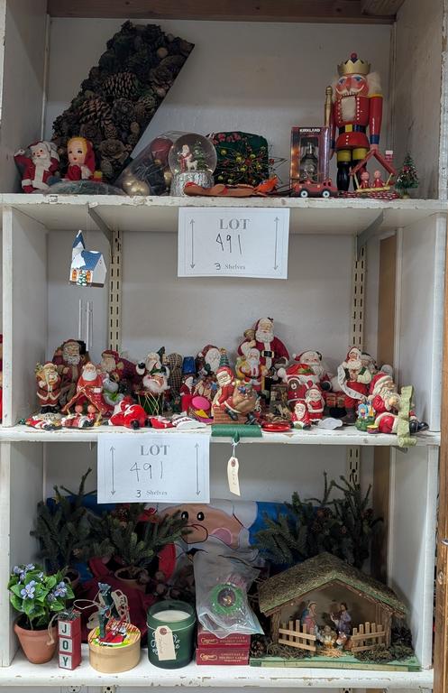Lot 491: (3) Shelves Of Christmas Decorations.