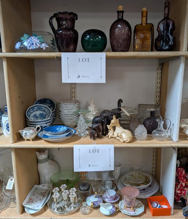 Lot 469: (3) Shelves Of Knick Knacks, Glass And China.