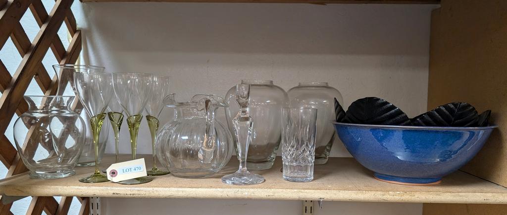 Lot 470: Shelf Of Glassware And A Ceramic Bowl.