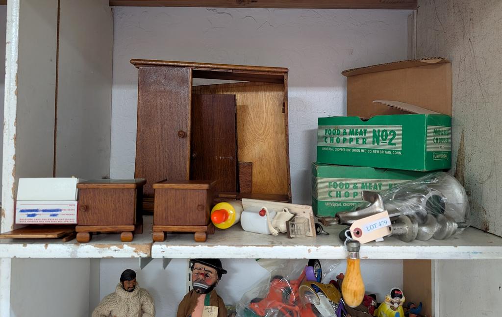 Lot 479: (2) Universal No. 2 Meat Grinders & Doll House Kitchen.
