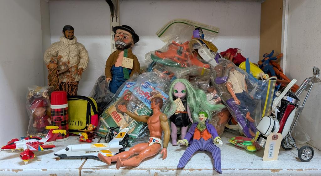 Lot 472: Large Shelf Of G.I. Joes And Other Toys.