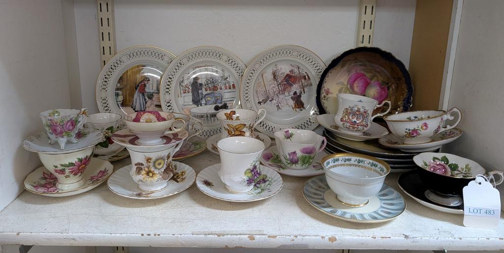 Lot 483: Shelf Of Plates And Teacups.