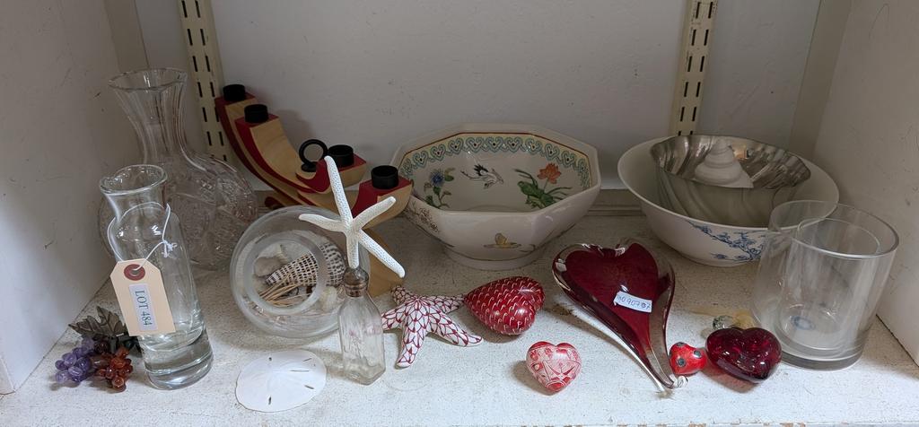 Lot 484: Shelf Of Porcelain And Glass Decorative Items.