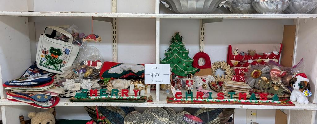 Lot 488: (2) Shelves Of Christmas Decorations.