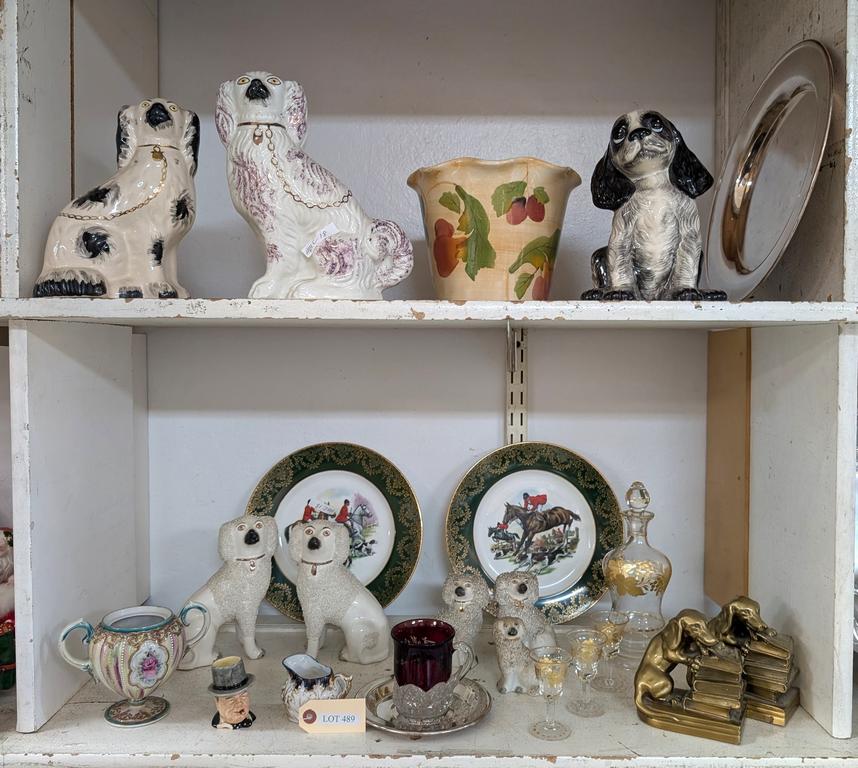 Lot 489: (2) Shelves Of Staffordshire Dogs And Knick Knacks.