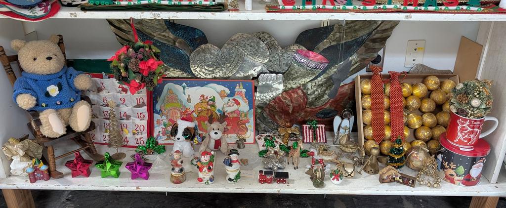 Lot 490: Large Shelf Of Christmas Decorations.
