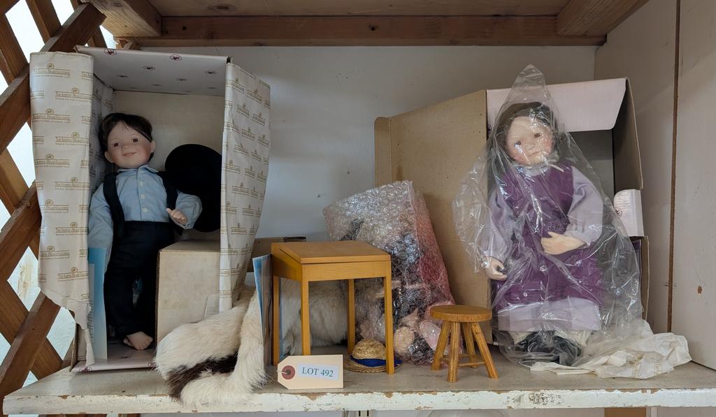 Lot 492: (2) Amish Kid Dolls And Accessories.