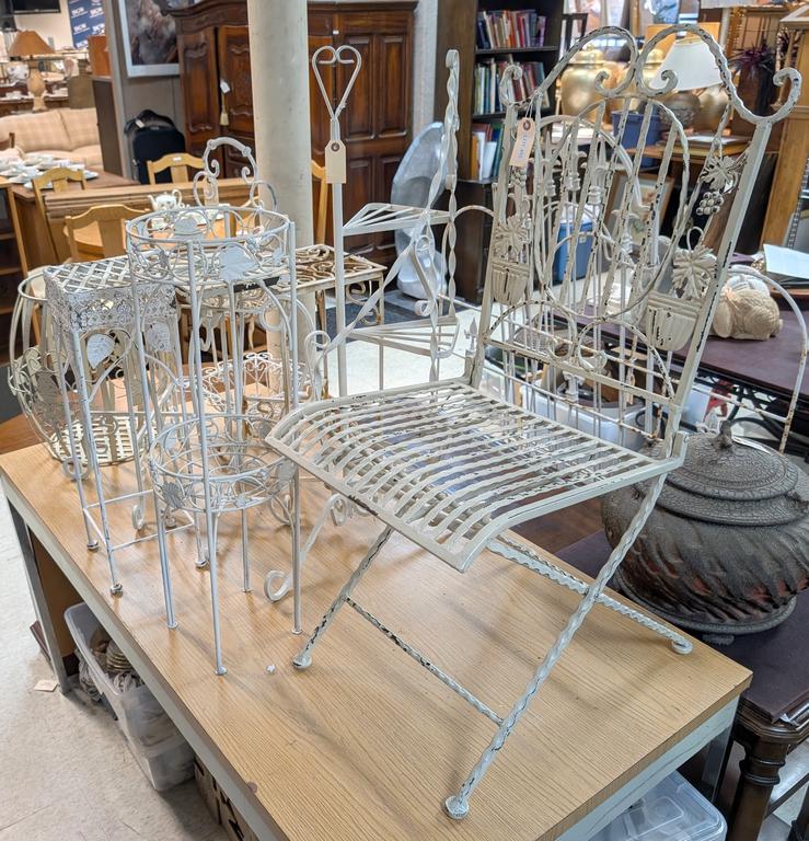 Lot 495: (9) White Painted Metal Plant Stands.