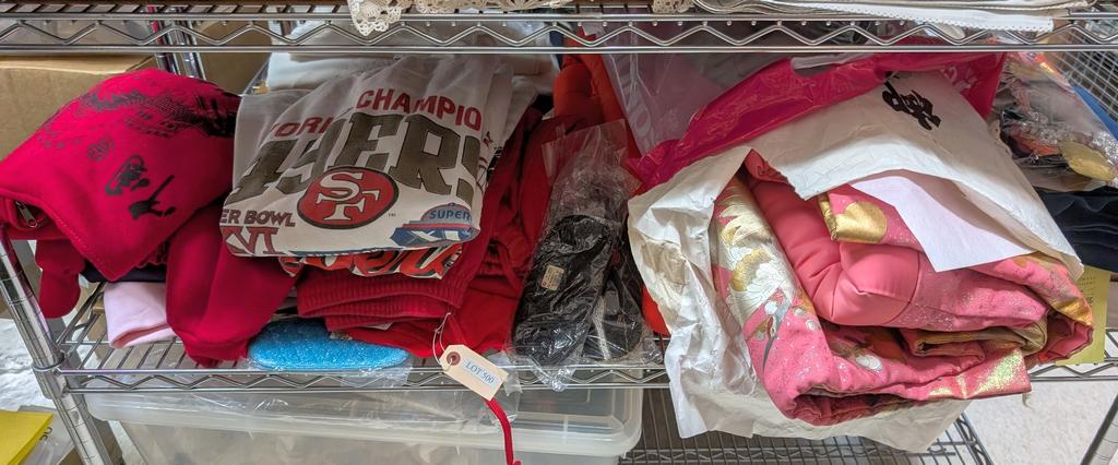 Lot 500: Shelf Of Clothes Incl. 49ers, Japanese.