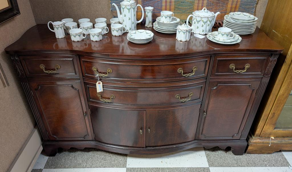 Lot 506: Mahogany Bow Front Sideboard With 4 Doors & 4 Drawers.