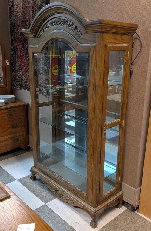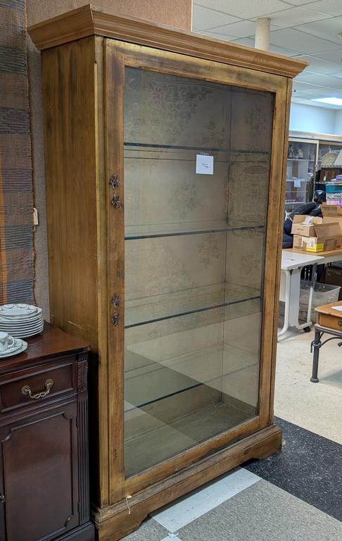 Lot 527: Oak Single Door Display Cabinet With 4 Glass Shelves.
