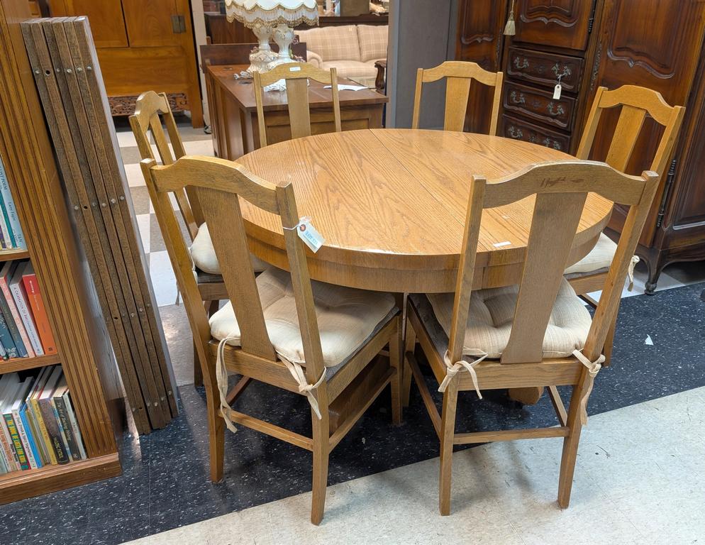Lot 521: Oak Circular Dining Table With 6 Chairs.