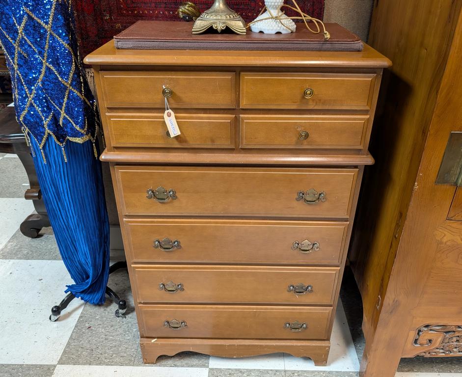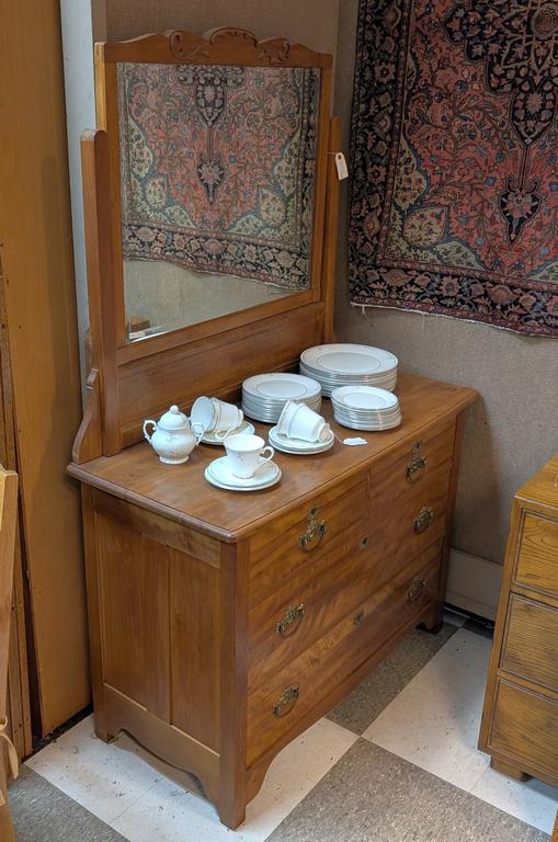 Lot 522: Cherry Wood 4-Drawer Chest With Mirror.
