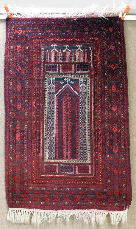 Lot 529: Afghan Baluch Prayer Rug. 4'9" X 3'.