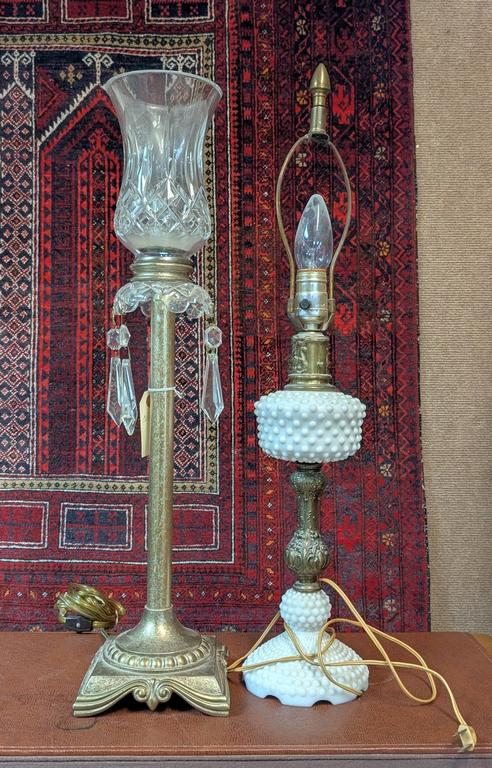 Lot 530: (2) Vintage Metal And Hobnail Glass Table Lamps.
