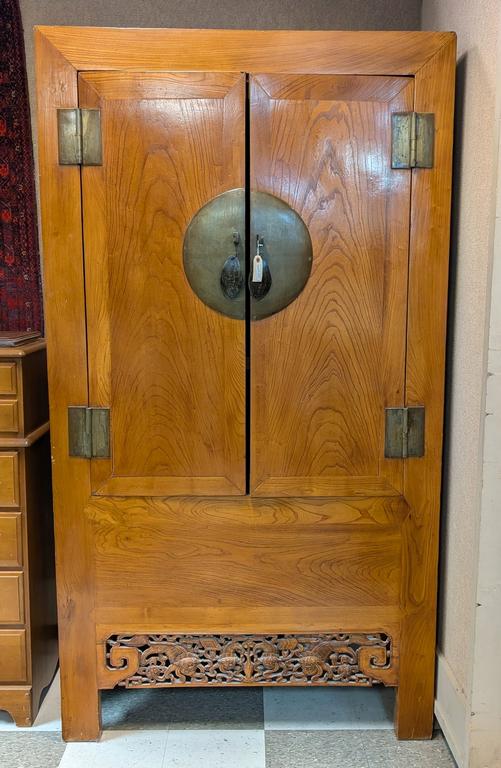 Lot 532: Chinese Carved Tall Wardrobe Cabinet.