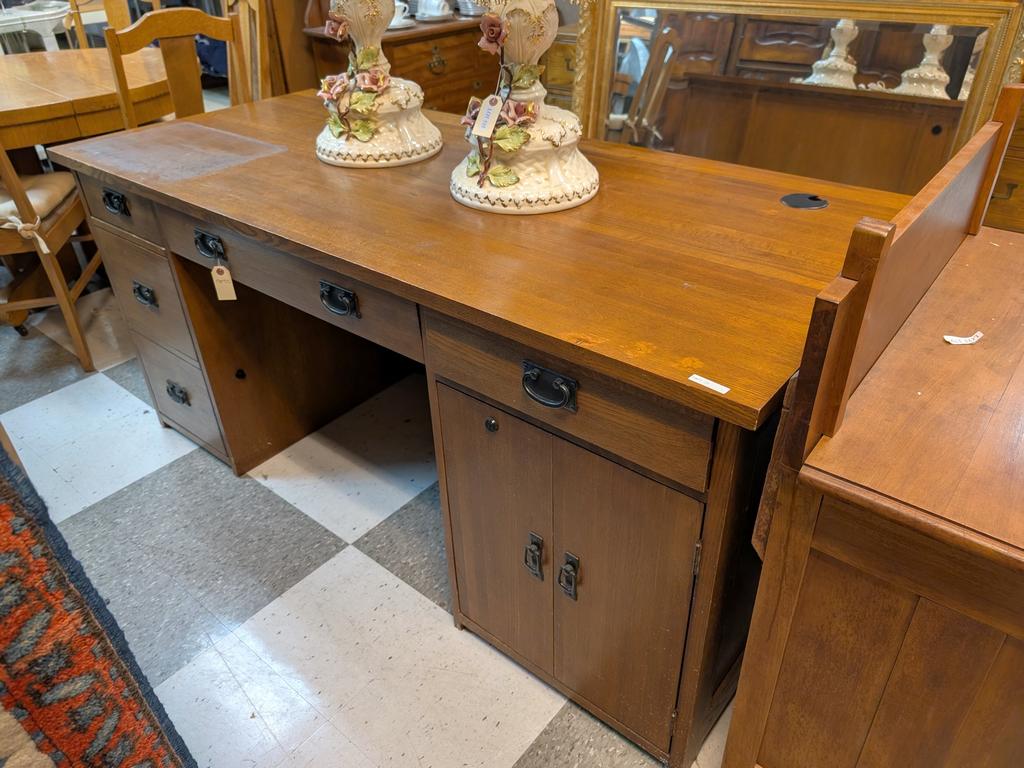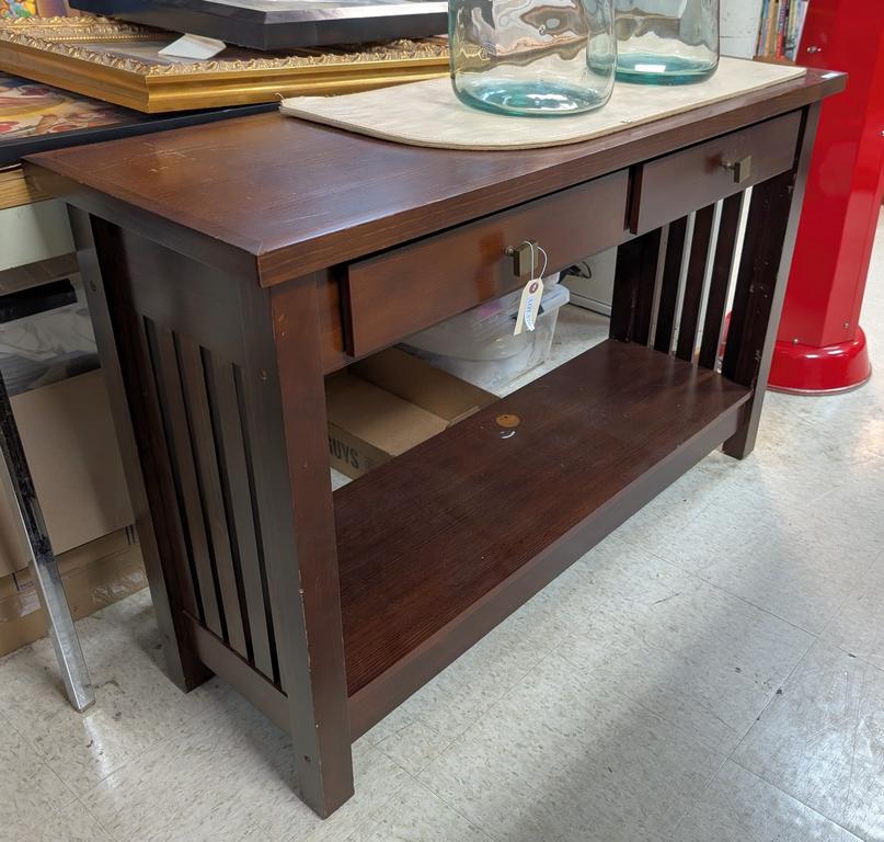 Lot 570: Mission Style Oak 2-Drawer Console Table.