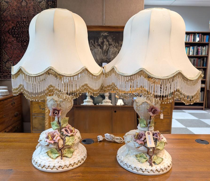 Lot 535: Pair Of Capodimonte Porcelain Floral Table Lamps