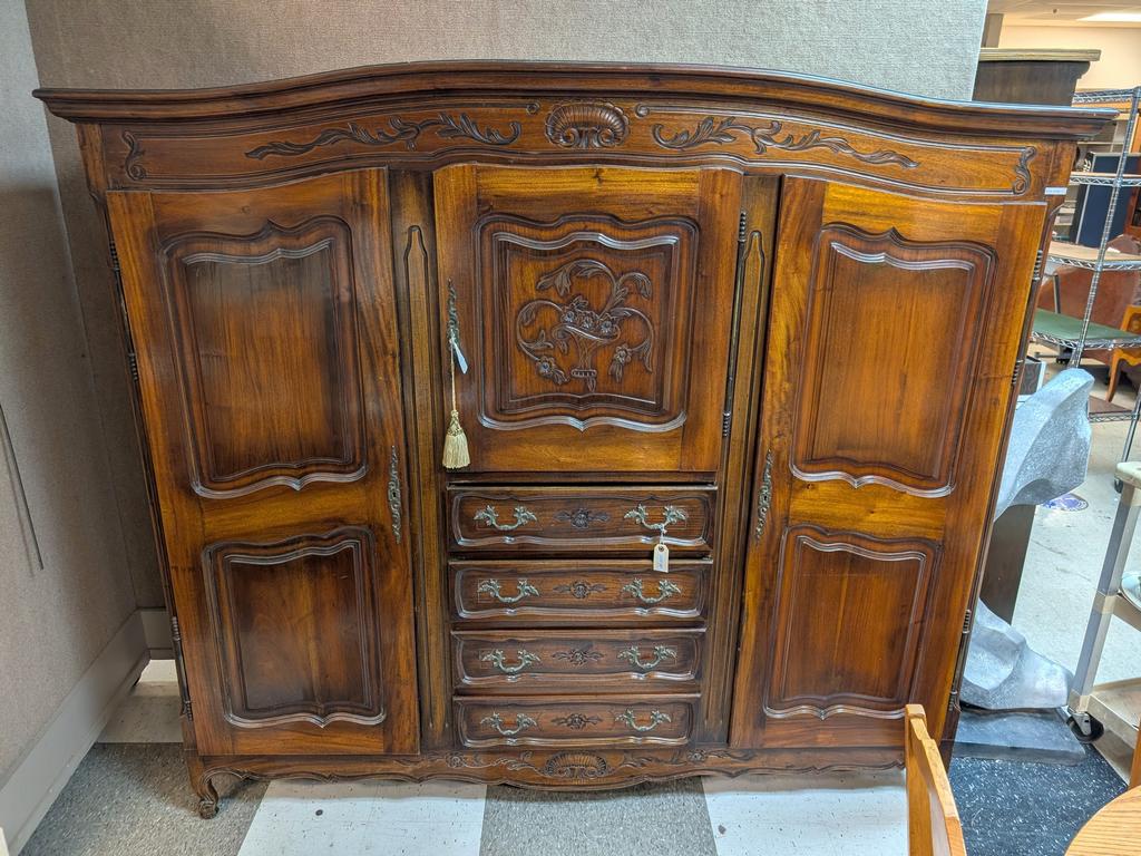 Lot 537: Provincial Style Large Wardrobe With 3 Doors And 4 Drawers.