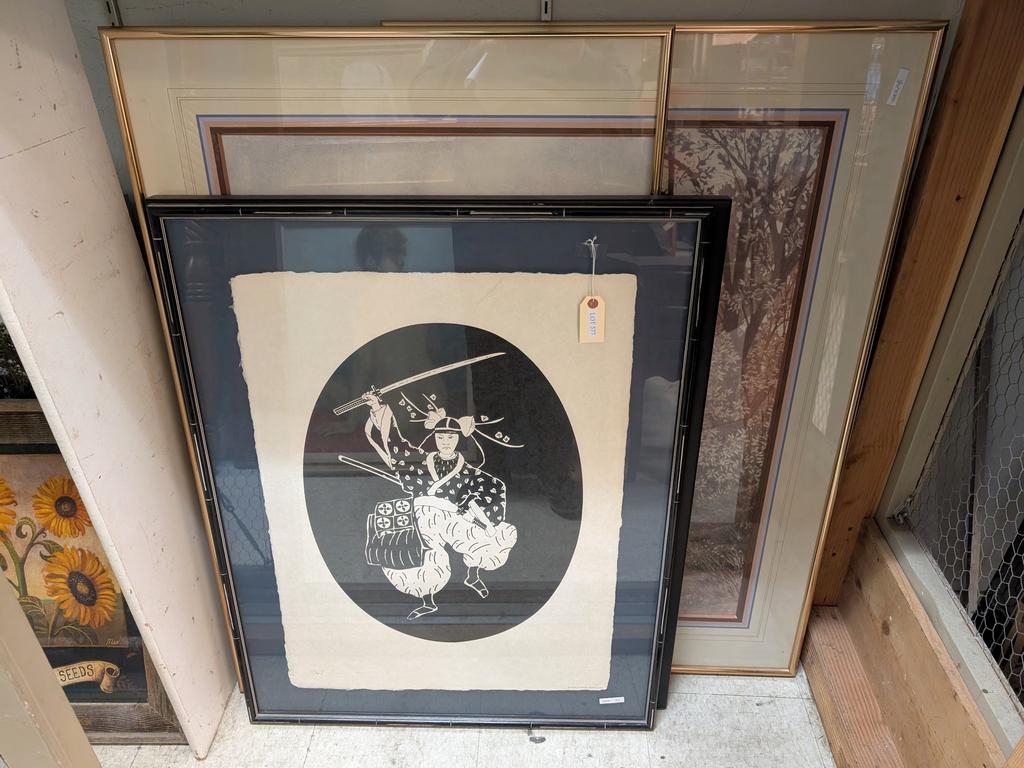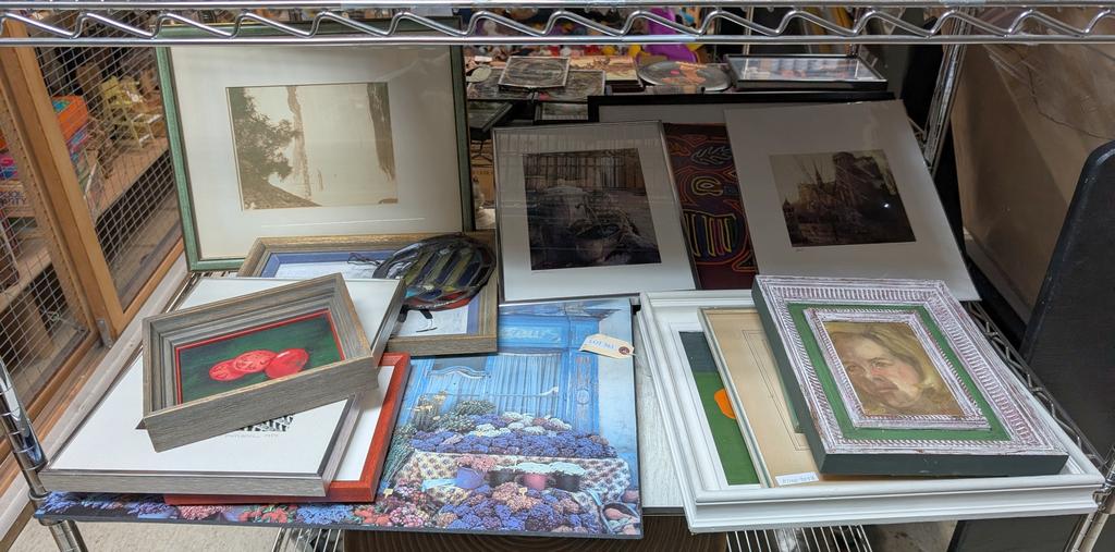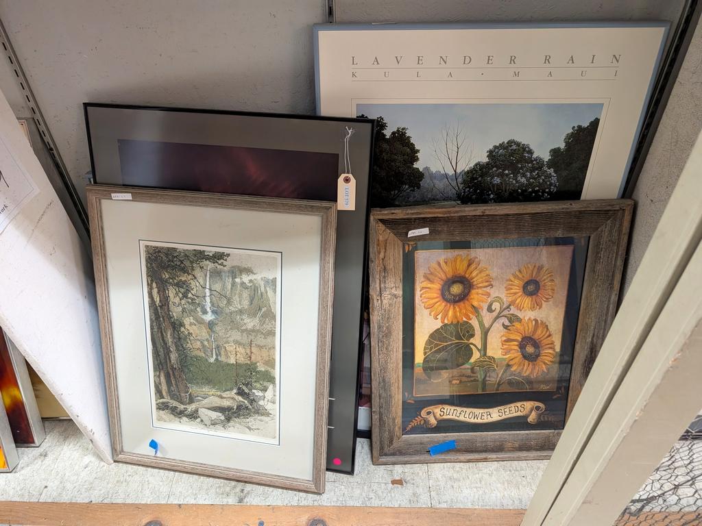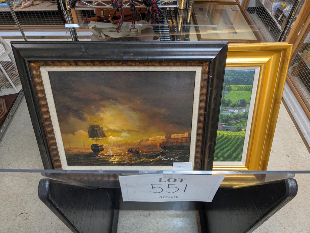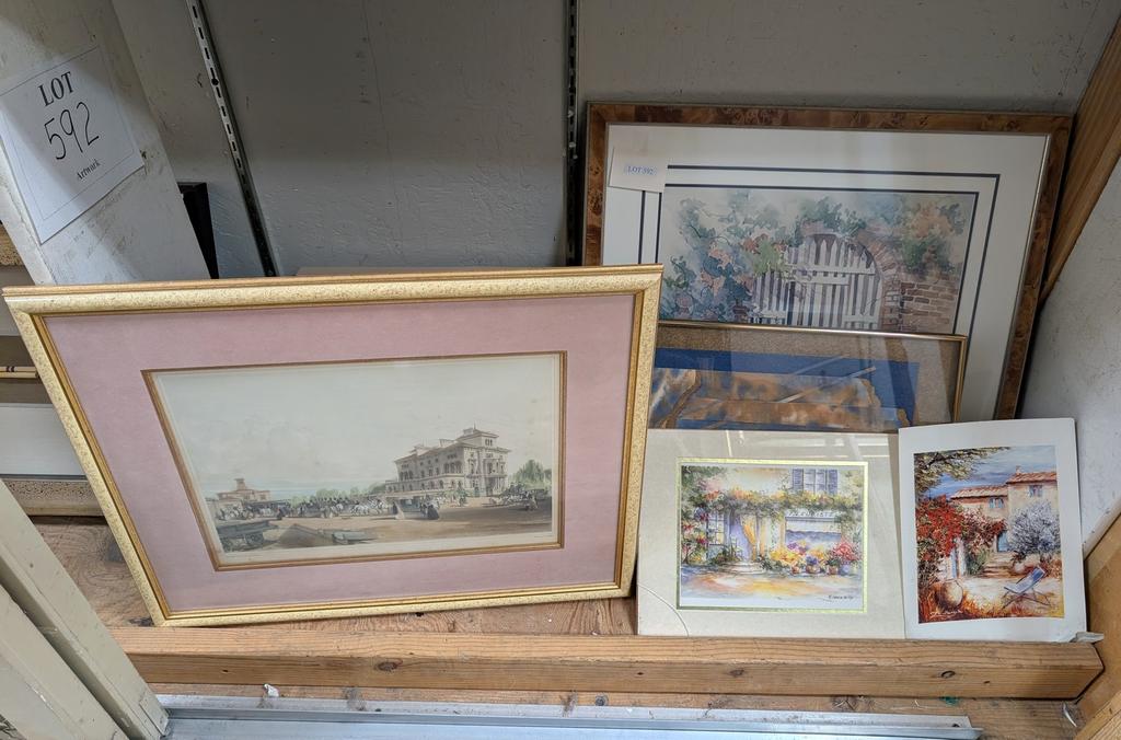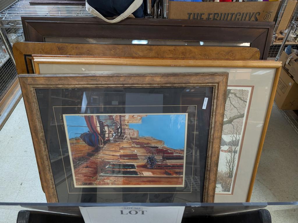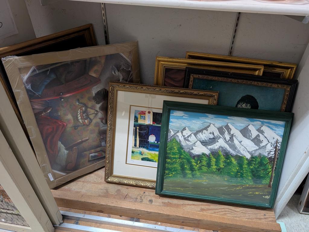 Lot 563: Shelf Of Artwork Incl. Oils, Prints.