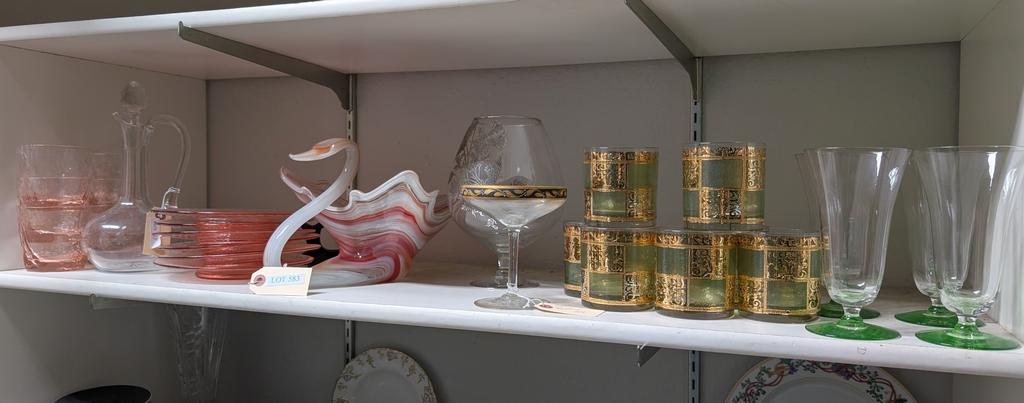 Lot 507: Gilt Painted Single Glass Door Display Cabinet With 4 Glass Shelves.