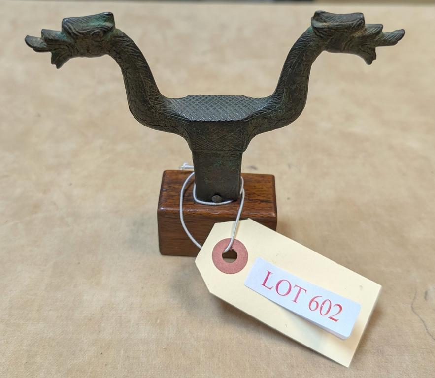 Lot 602: Bronze Twin Headed Staff Finial. Probably Luristan.