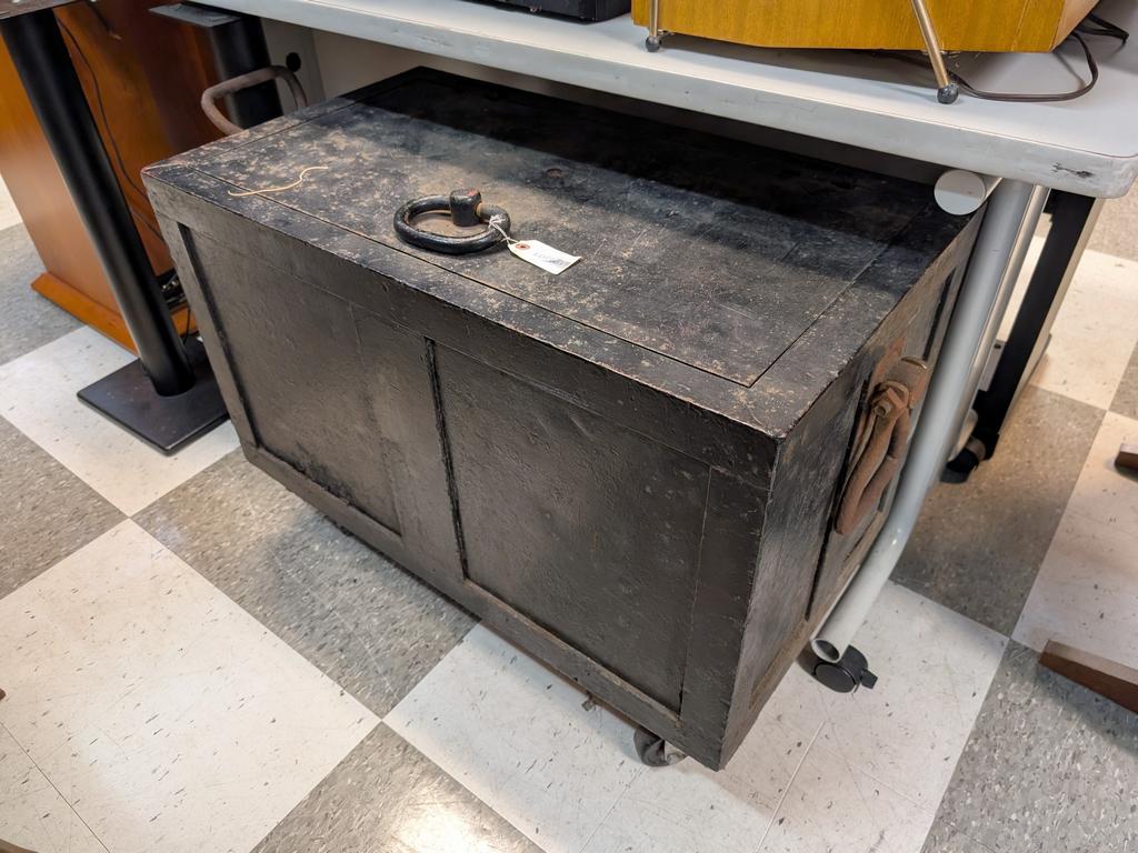 Lot 614: Heavy Duty Metal Strong Box With Lid And 2 Handles.