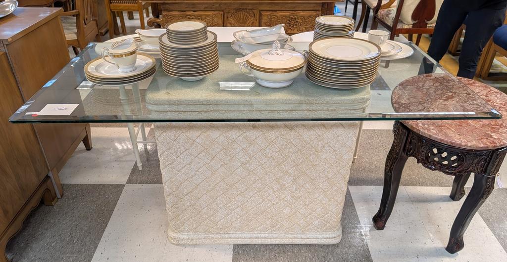Lot 627: Glass Top Pedestal Table On Ceramic Base.