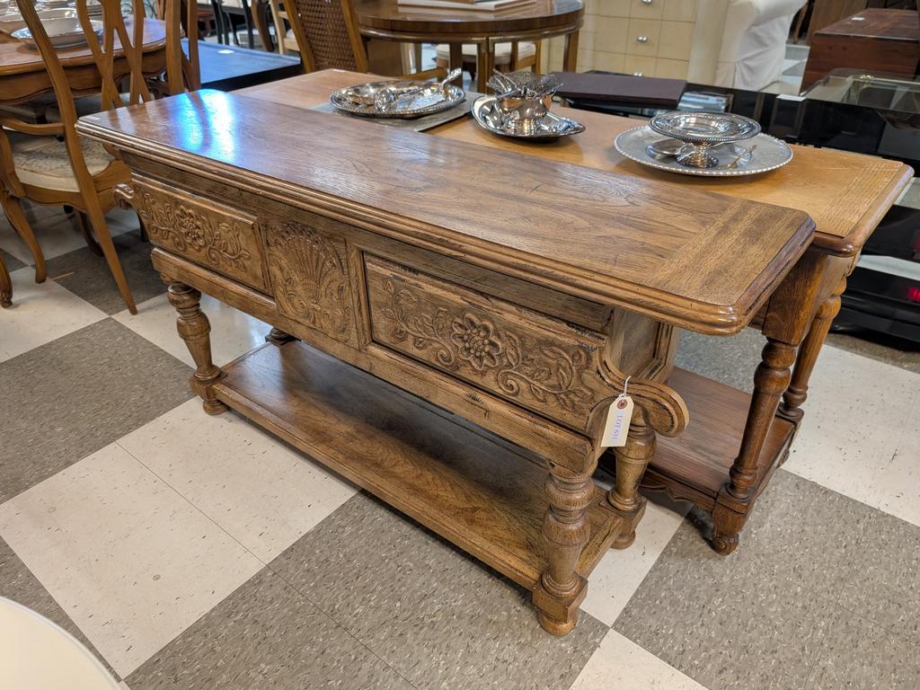 Lot 631: Oak Sofa Table With 2 Pull Out Doors And Lower Shelf.