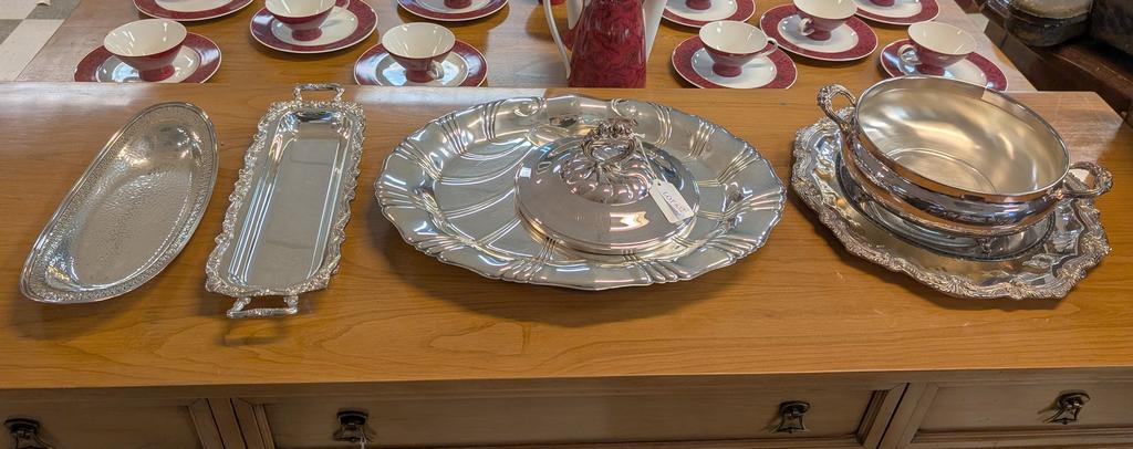Lot 632: Group Of (6) Silver Plated Tableware Items.