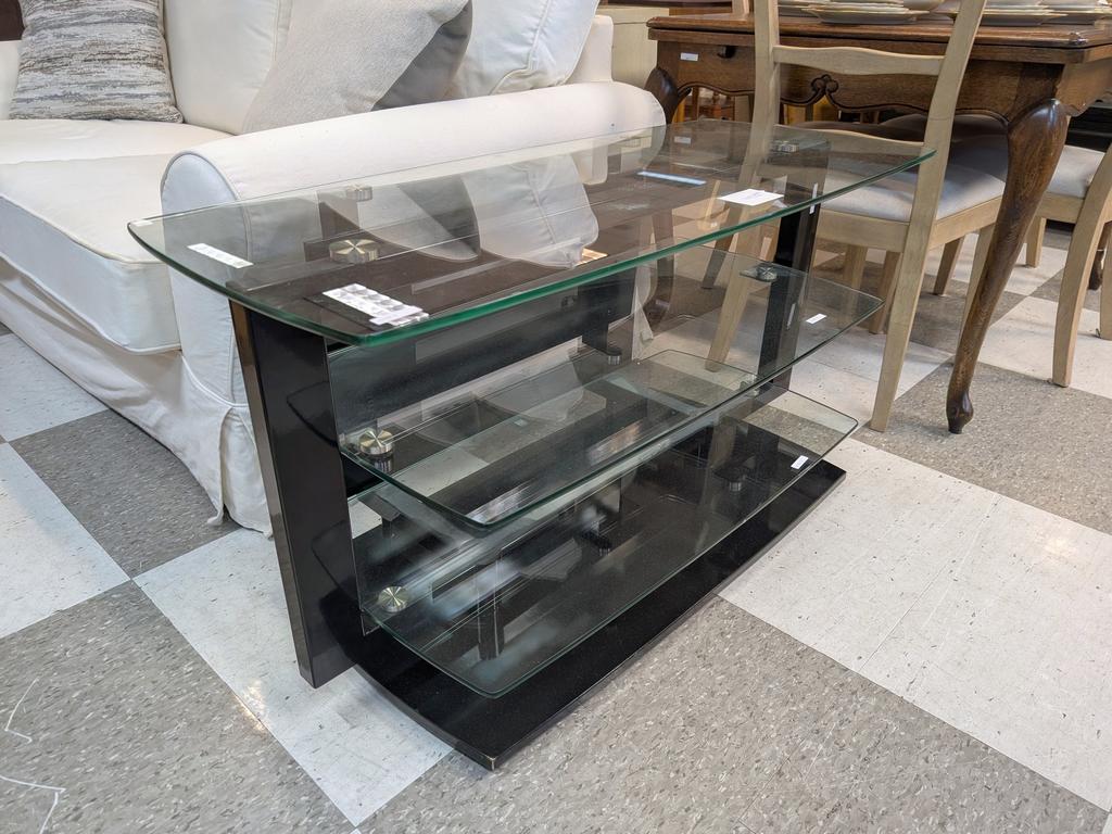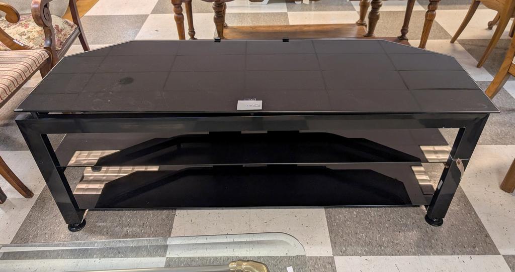 Lot 645: Glass 2-Shelf TV Stand.
