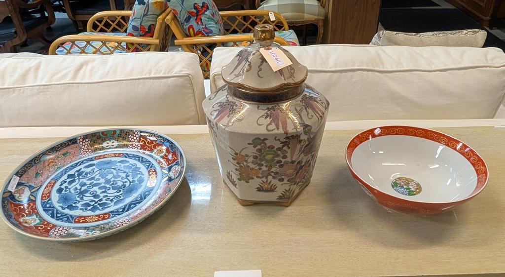 Lot 641: (4) Porcelain Items Incl. Imari Charger, Ginger Jar.