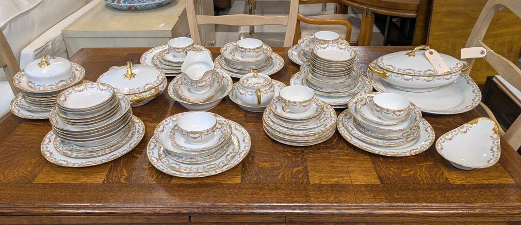 Lot 643: Limoges Green And Rose Garland Porcelain Dinner Service.
