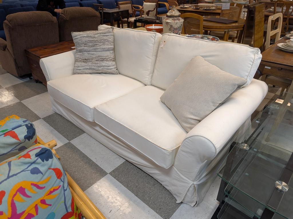 Lot 646: White Upholstered 2-Seat Sofa.