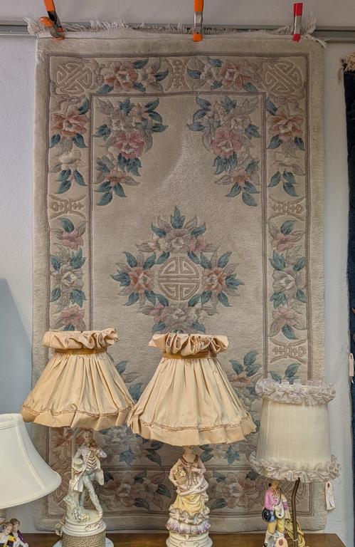 Lot 653: Oriental Wool Pile Rug. Beige With Floral Decoration. 5' X 3'.