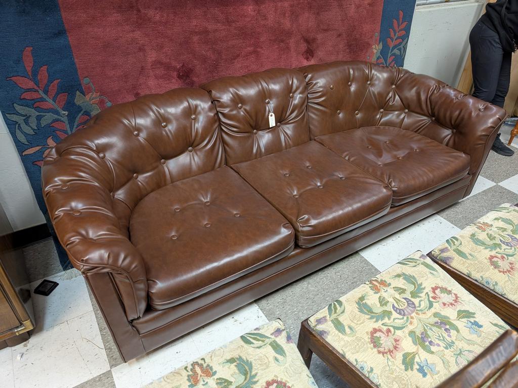 Lot 656: Brown Vinyl Upholstered Sofa.