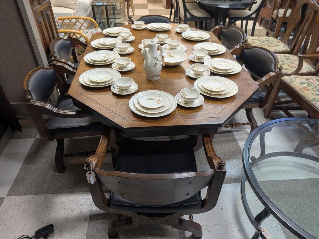 Lot 670: Oak Octagonal Dining Table With 6 Chairs.