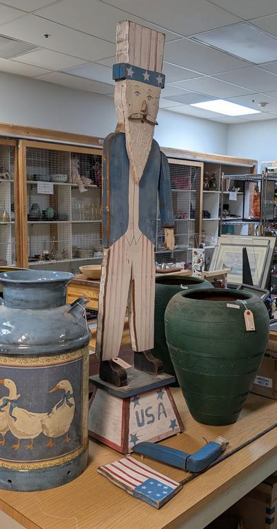 Lot 679: Uncle Sam Painted Wood Lawn Sculpture.