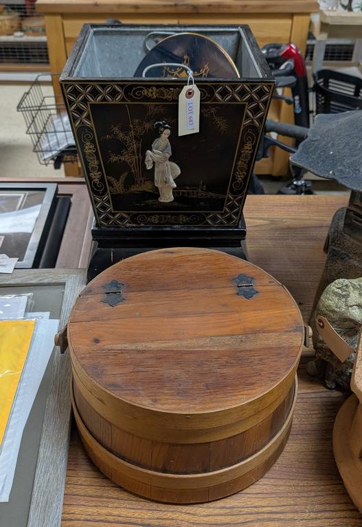 Lot 683: Chinese Black Lacquer Planter And A Lidded Box.