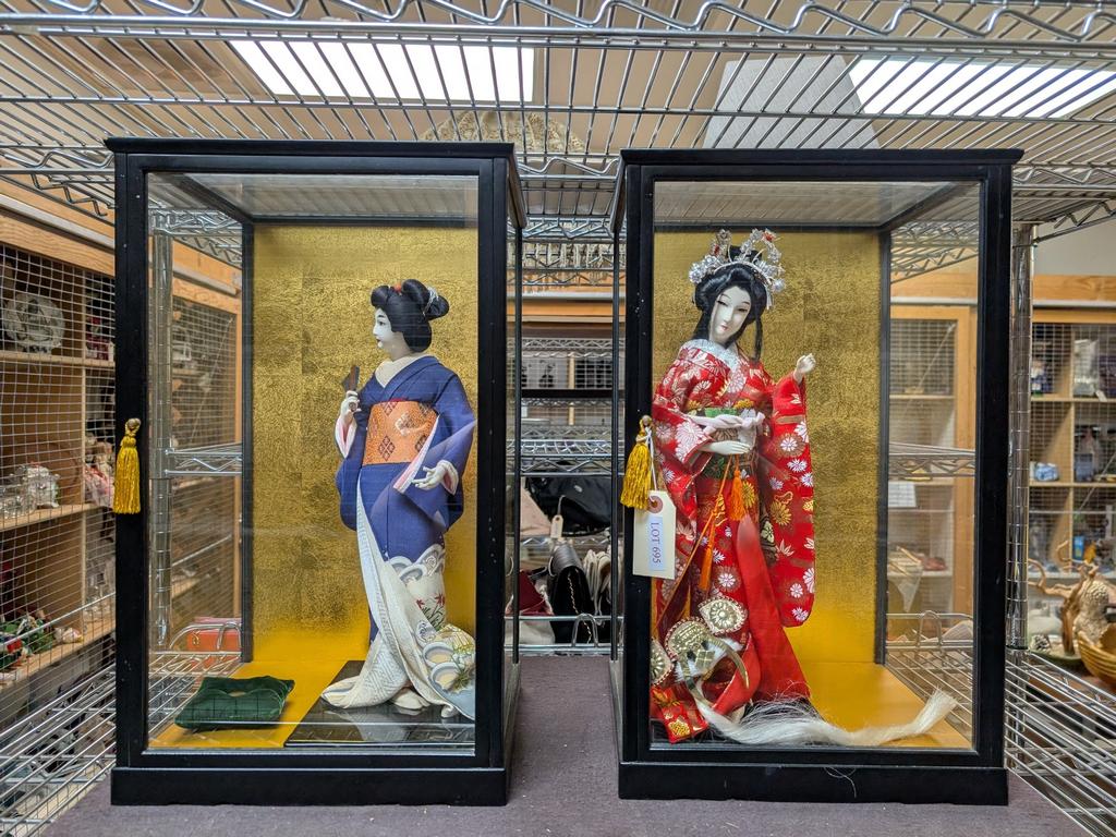 Lot 695: (2) Japanese Geisha Dolls In Display Cases.